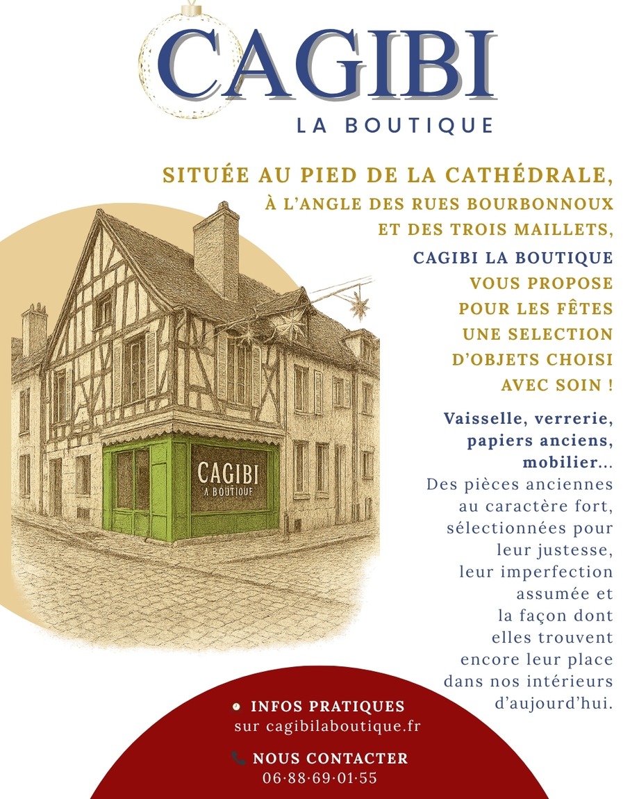 Cagibi La Boutique prend ses quartiers au cœur du centre historique de Bourges, à l’angle de la rue Bourbonnoux et des Trois Maillets, à deux pas de la Cathédrale.
