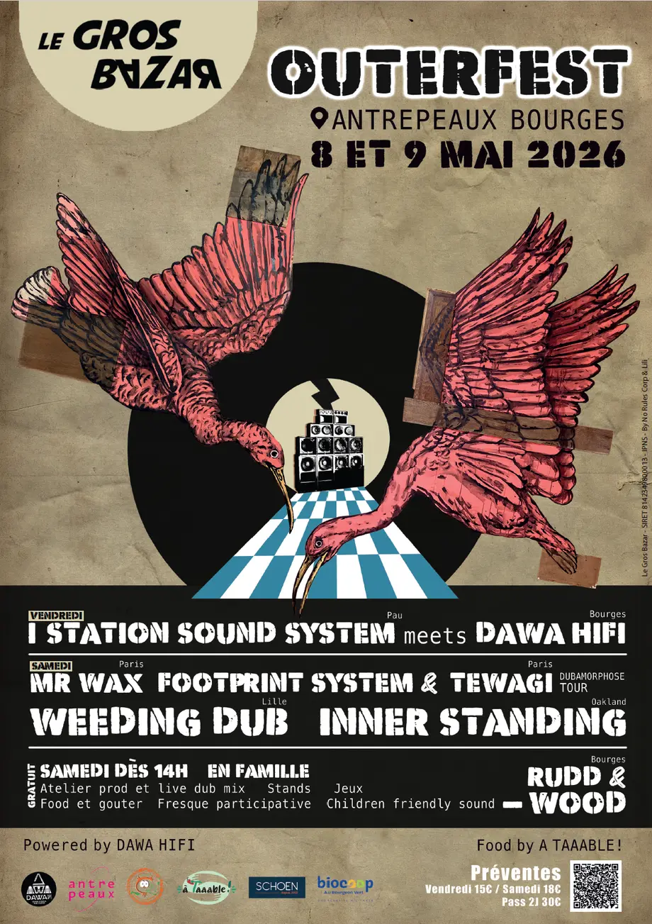 L’OUTERFEST revient pour une deuxième édition à l’Antre Peaux, à Bourges, avec deux soirées consacrées aux cultures dub et sound system. Cet événement met à l’honneur une programmation réunissant plusieurs artistes et collectifs reconnus :