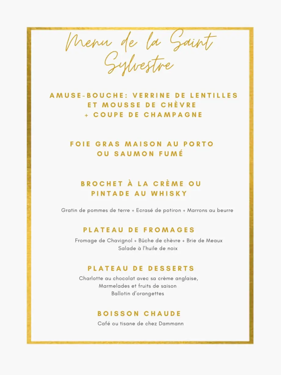 Menu du Nouvel An - Au Bon CoinLe 31/12/2025 VenesmesPour ce dernier repas de l'année, vous dégusterez au menu :