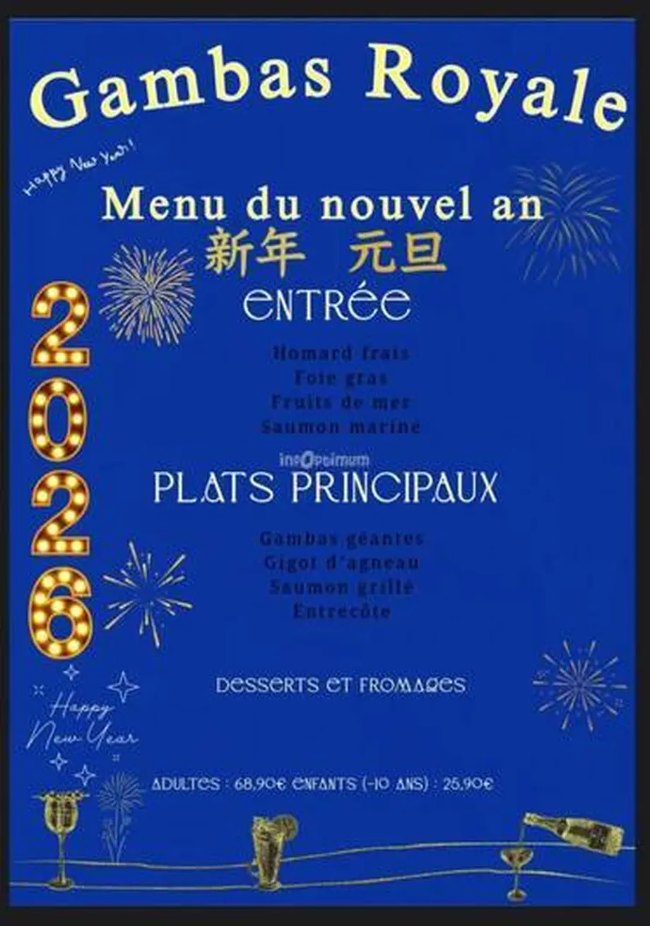 Pour le passage à la nouvelle année, le restaurant Gambas Royale vous propose un menu spécial pour le Nouvel An, alliant saveurs raffinées et cuisine généreuse.