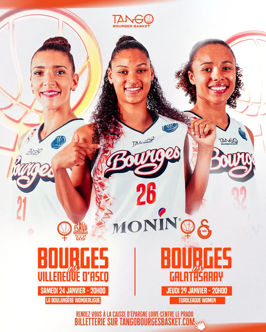 - Jeudi 29 janvier à 20 h : Bourges accueille Galatasaray en EuroLeague Women, une confrontation européenne attendue qui promet rythme, intensité et émotions fortes.
