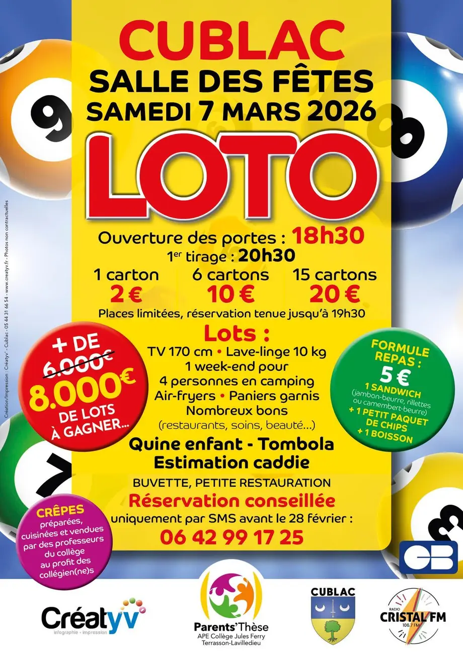 Loto du lycéeLe 14/03/2026VoutezacUn loto est organisé par les étudiants du BTS Métiers du végétal du campus du végétal du Pays de Brive.