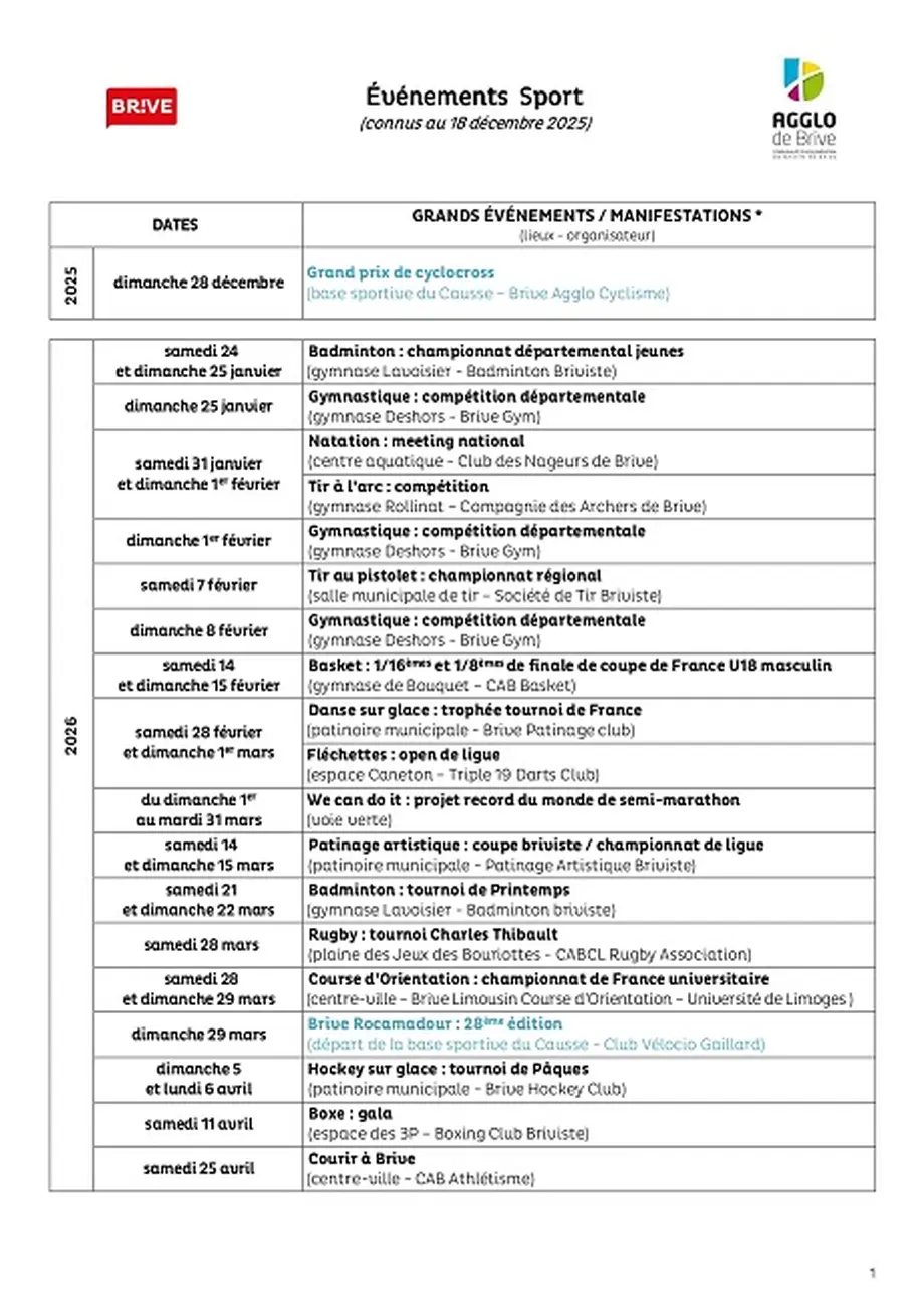 Cet événement a été renseigné par un organisme institutionnel (Brive Tourisme). Date de dernière mise à jour le 09/01/2026.