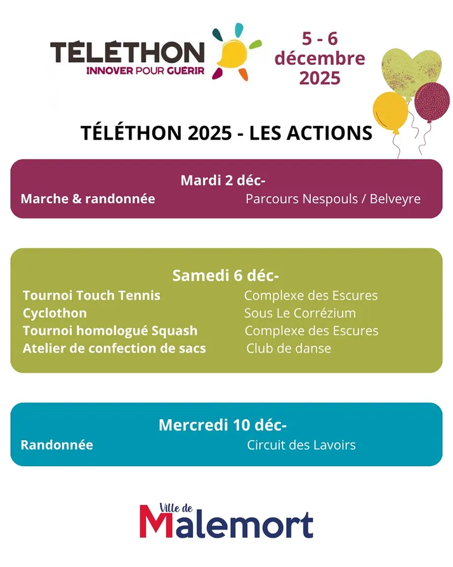 - Participation minimale : 5 € — règlement par chèque à l’ordre de l’AFM Téléthon.