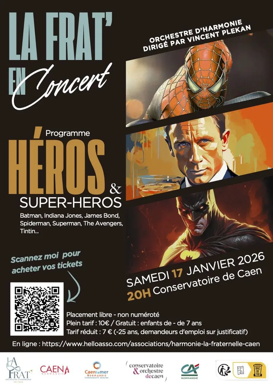 L’Orchestre d’Harmonie La Fraternelle de Caen vous invite à un concert exceptionnel entièrement dédié aux musiques qui ont marqué notre imaginaire : Batman, Spiderman, James Bond, Indiana Jones, Superman, Les Avengers, Tintin… et bien d’autres encore.