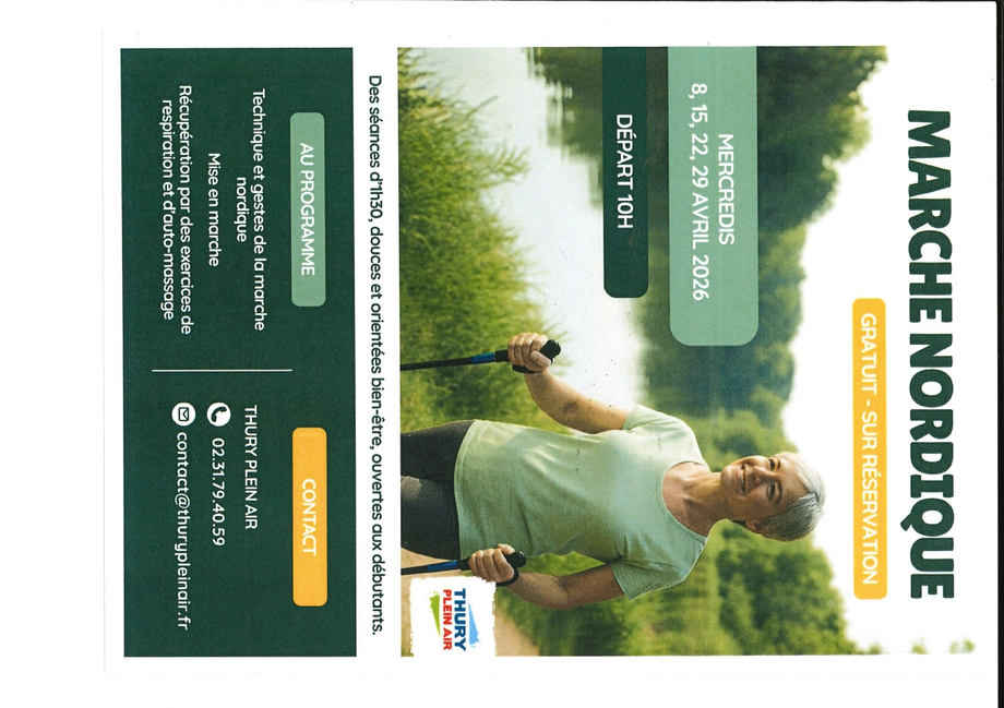 Thury Plein Air vous propose de la marche nordique les mercredis 8, 15, 22 et 29 avril.