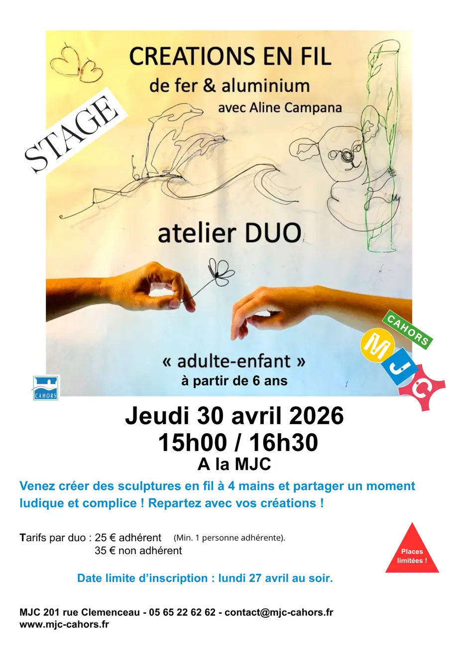 Atelier OrigamiLe 29/04/2026CahorsAtelier créatif dédié à la découverte de l’origami, art ancestral japonais du pliage de papier. Cette activité ludique et conviviale permet aux […]