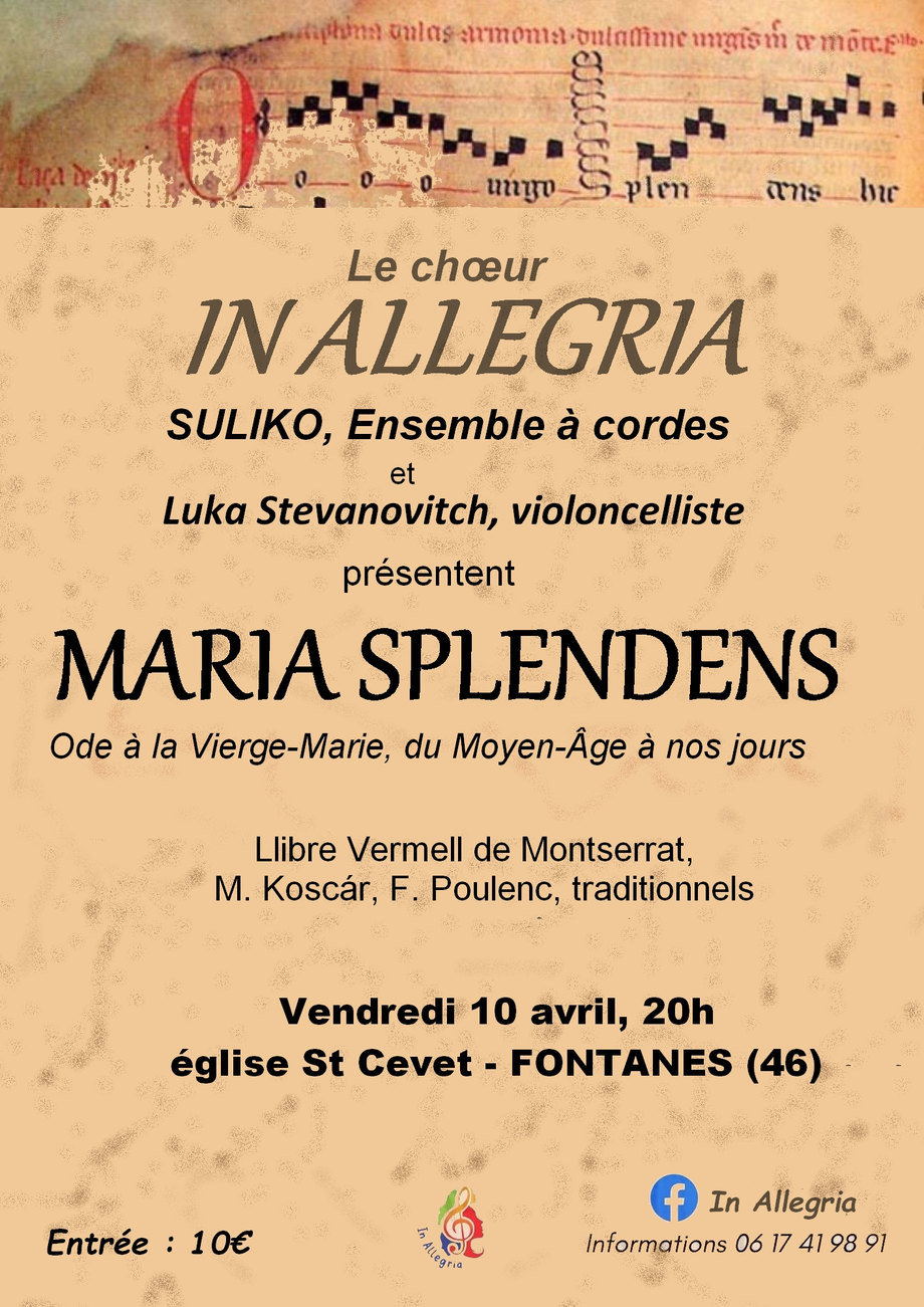 Le chœur In Allegria et l’ensemble à cordes Suliko se produiront le 10 avril en l’église de St Cevet à Fontanes.