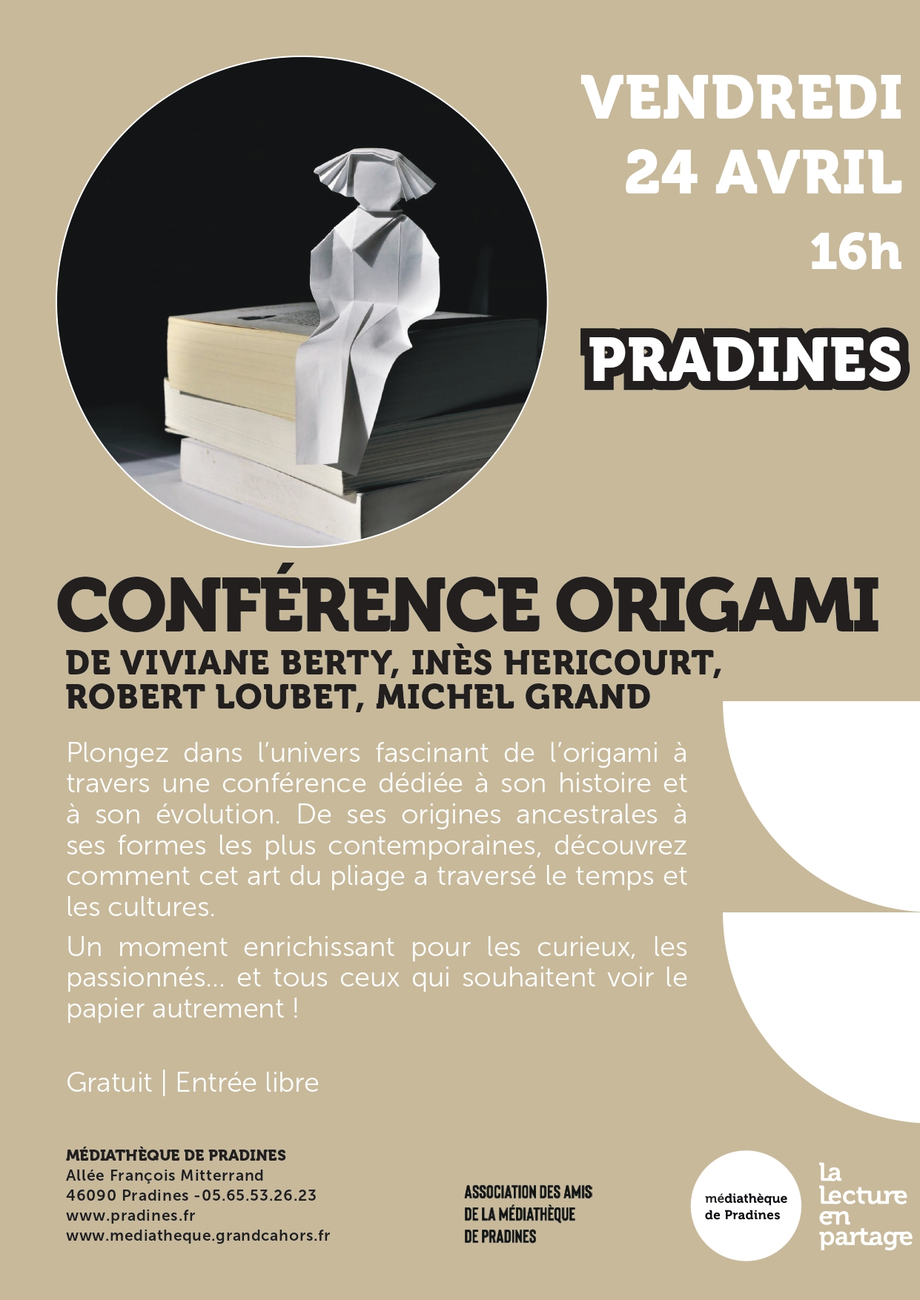 Plongez dans l’univers fascinant de l’origami à travers une conférence dédiée à son histoire et à son évolution. De ses origines ancestrales à ses formes les plus contemporaines, découvrez comment cet art du pliage a traversé le temps et les cultures. Un moment enrichissant pour les curieux, les passionnés… et tous ceux qui souhaitent voir le papier autrement !