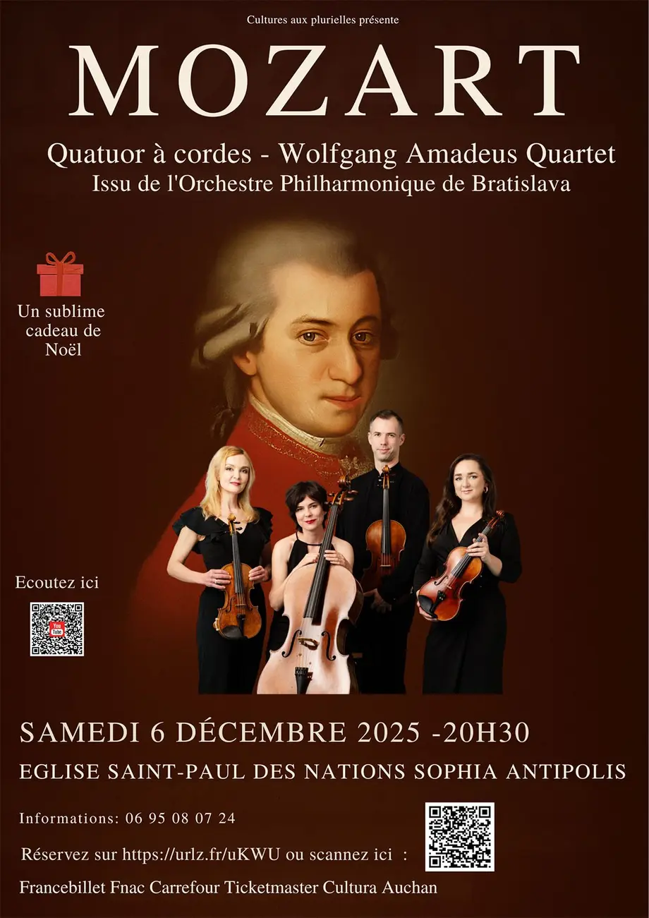 Par amour pour ce compositeur d’exception, le quatuor invite son public à un voyage musical dans des lieux empreints d’histoire, où la musique de Mozart, véritable prière, résonne avec une intensité inégalée.
