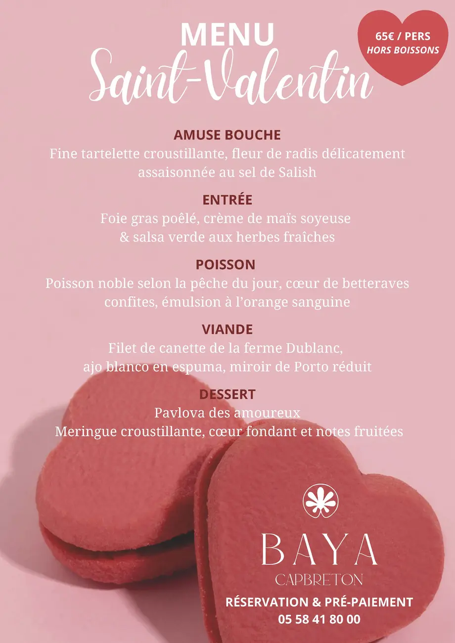 Menu Saint Valentin au Bistro'Baya