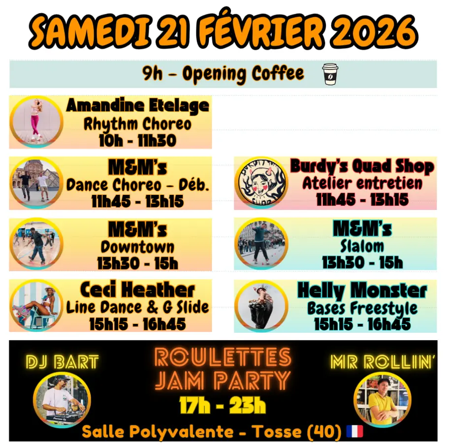 Organisé par l’association Roulettes, le Roulettes Jam Fest a pour ambition de rassembler des passionnés pour explorer la pratique du roller quad sous de nombreuses formes : roller dance, freestyle, slalom et saut, dans une ambiance festive et inclusive.