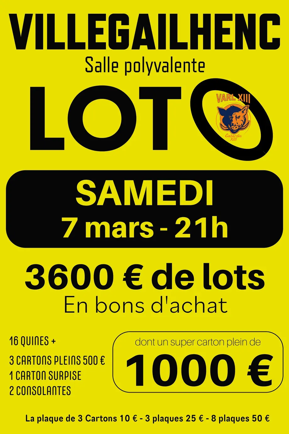 Loto avec 3600 € de lots en bons d'achat dont un carton plein à 1000 €