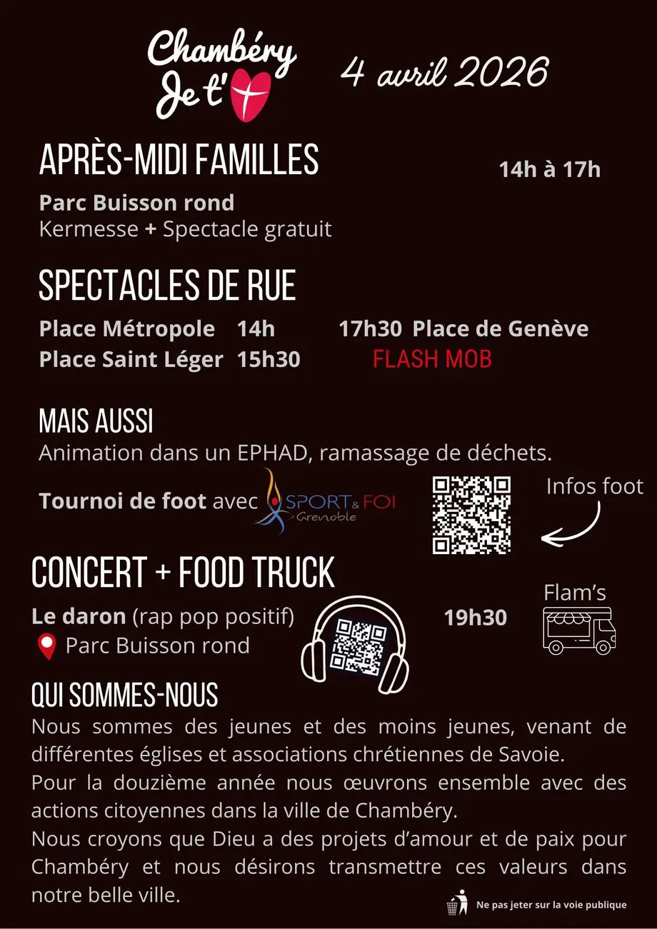 CleanWalkLe 04/04/2026ChambéryVenez rejoindre les jeunes de l'évènement Chambéry je t'Aime pour embellir votre ville. Départ au niveau de la poste du Verney […]