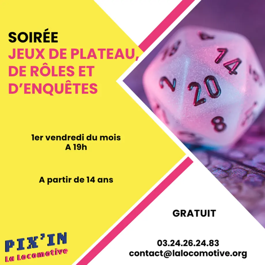 Soirée jeux de plateau, de rôles et d'enquêtes