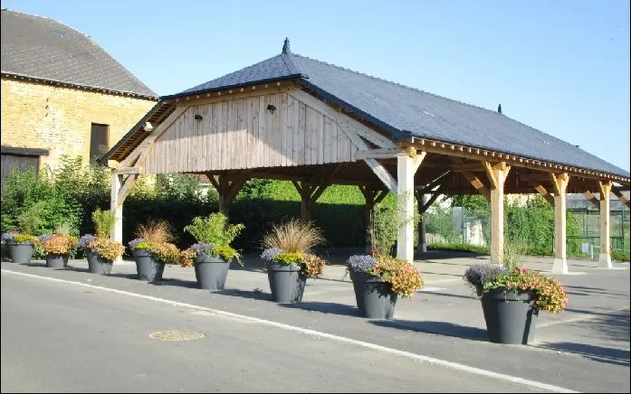 Halle à l'ancienne utilisée uniquement pour les spectacles et manifestations locales et non pour les particuliers , aménagée pour l'occasion bachée ou non suivant la saison