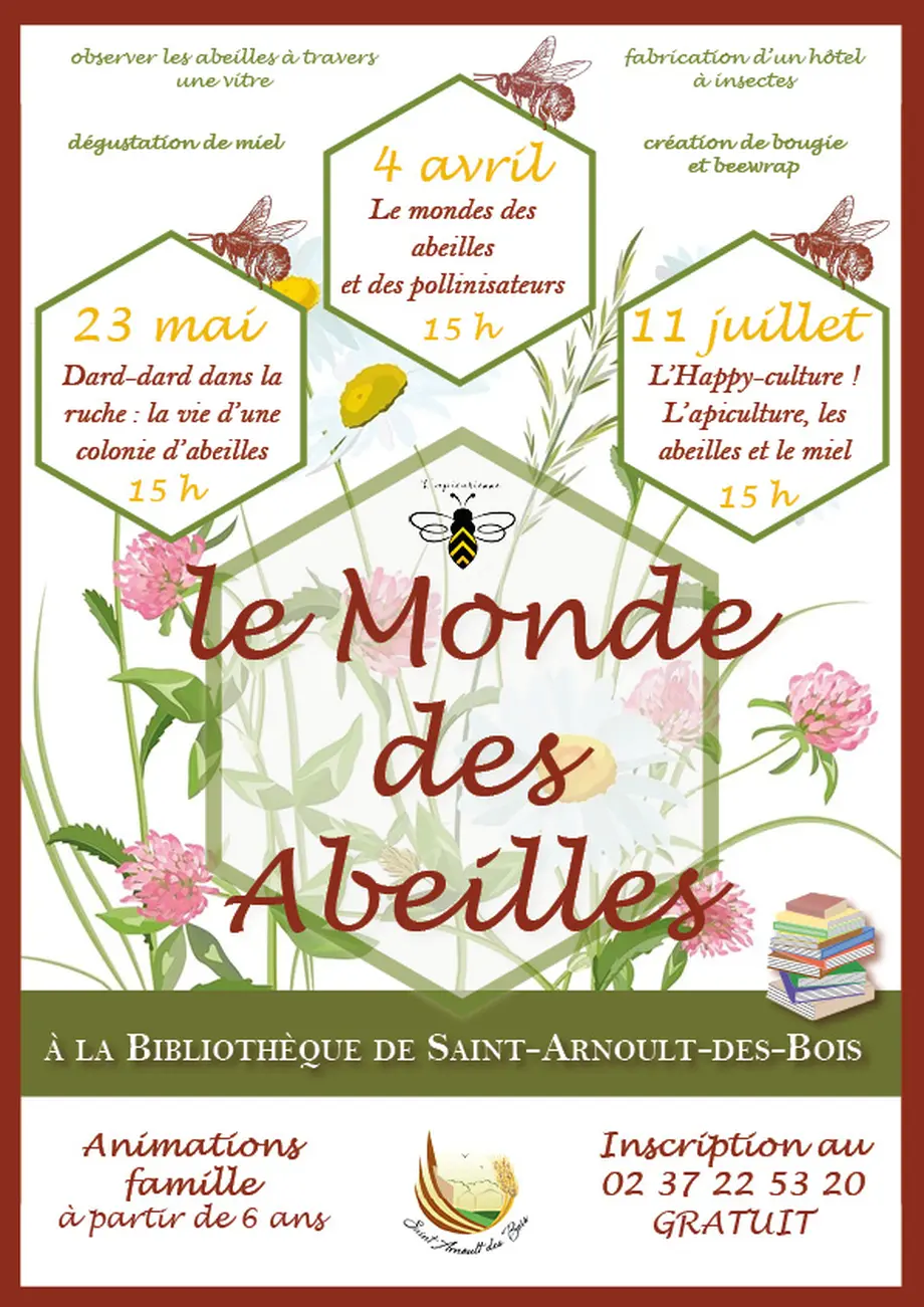 Venez découvrir trois animations proposées à la Bibliothèque de Saint-Arnoult-des-Bois sur le thème du monde des abeilles.