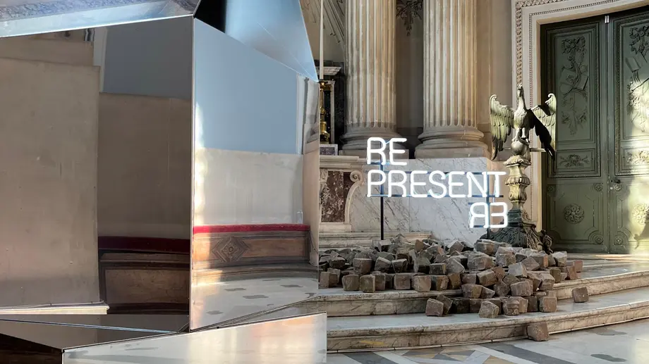 Dans la chapelle, des œuvres de l’artiste contemporain Bernard Calet dévoilent des néons avec l’inscription REPRÉSENTER dans un tas de pavés, et des sculptures résolument modernes en forme de maisons tout en miroirs. Au sol, l’artiste a souligné les colonnes à l’aide de tubes lumineux.
