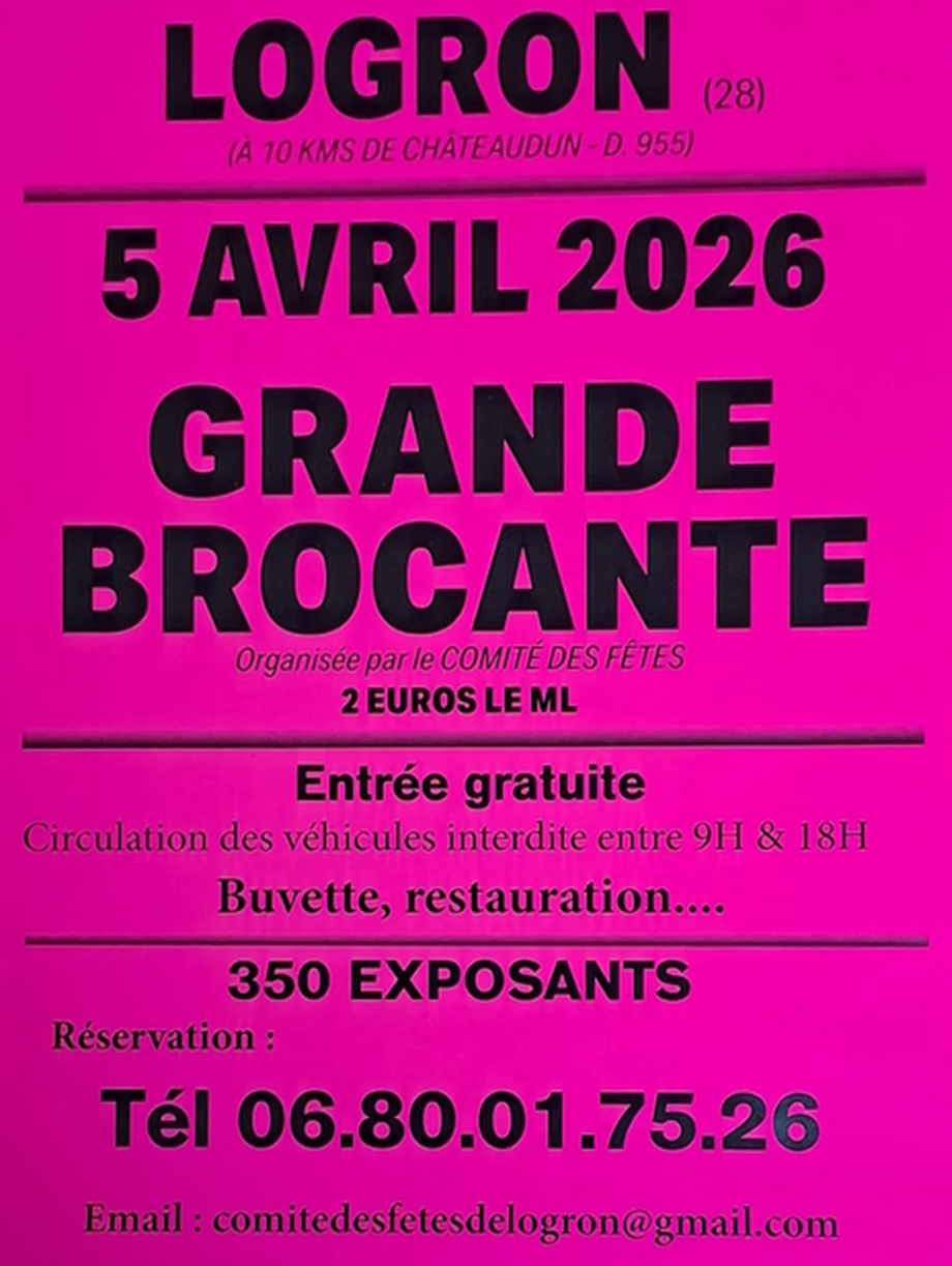 Bric à BracLe 22/03/2026Illiers-CombrayLe dimanche 22 mars, de 8 h à 17 h, aura lieu le bric-à-brac organisé par l’association « LES AUBÉPINES » de l’Ehpad Les Genêts.