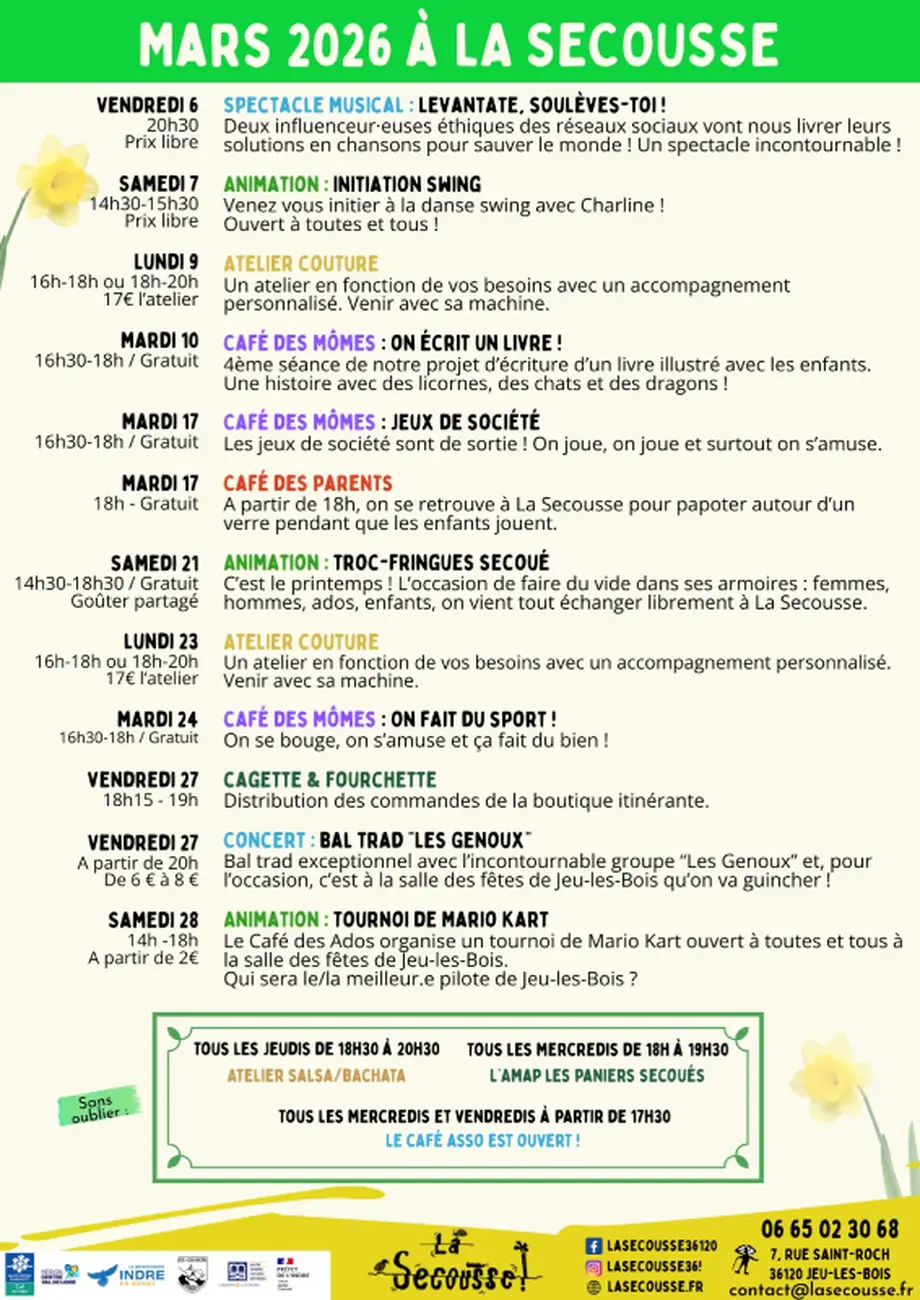 Cet événement a été renseigné par un organisme institutionnel (OT Châteauroux Berry Tourisme). Date de dernière mise à jour le 07/03/2026.