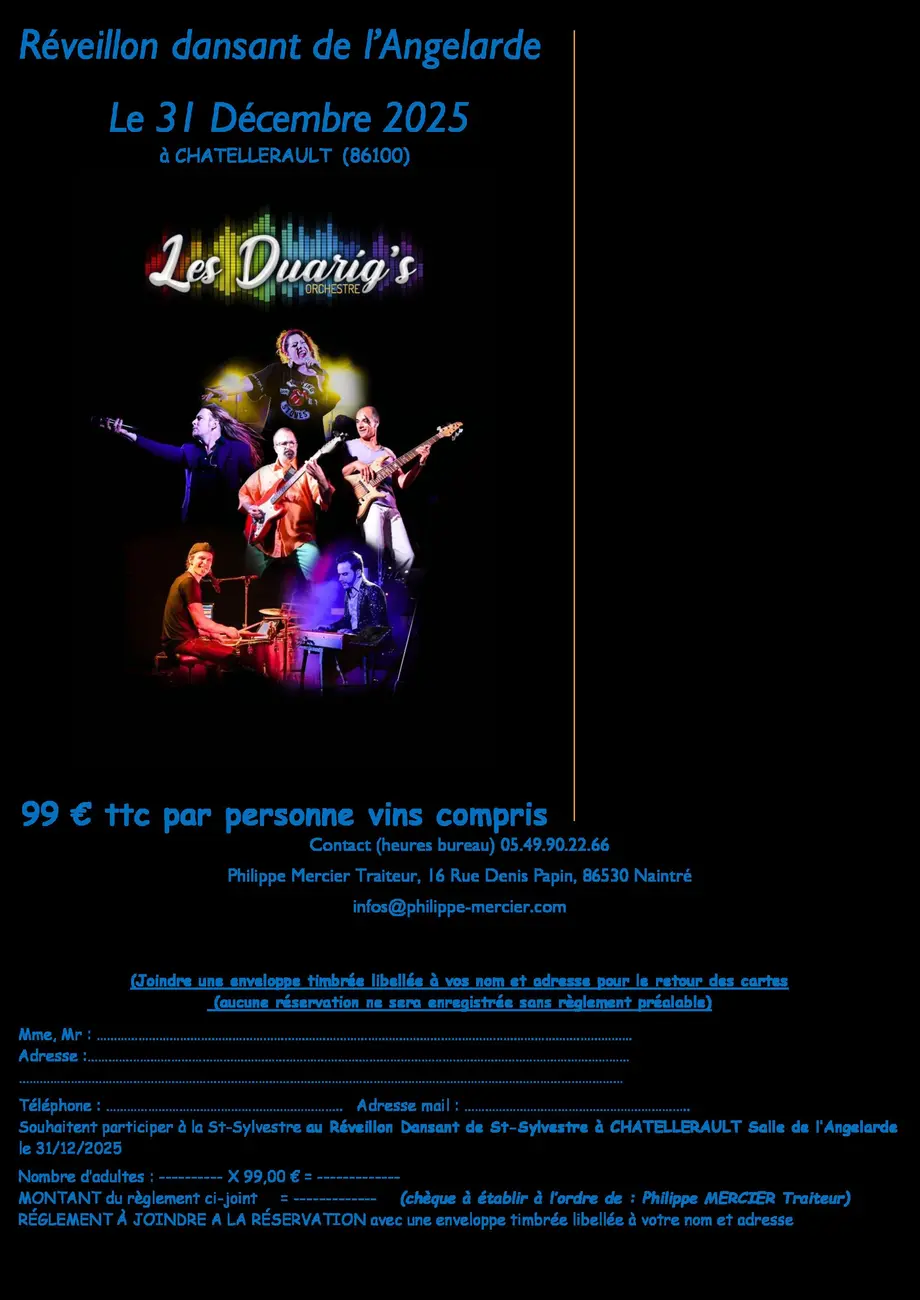 Souhaitent participer à la St-Sylvestre au Réveillon Dansant de St-Sylvestre à CHATELLERAULT Salle de l’Angelarde le 31/12/2025