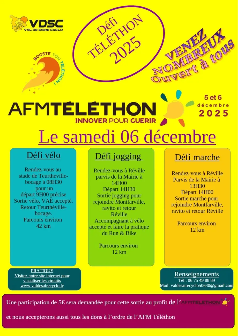 Journée organisée par le Val de Saire Cyclo le samedi 6 décembre 2025 au profit du Téléthon.
