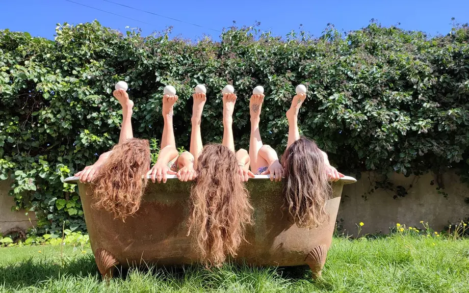 Trois jongleuses, une baignoire, 11 massues, 12 mains, 100 balles.