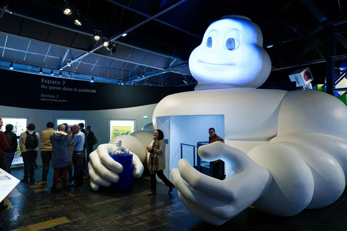 Le parcours scénographique, étendu sur 2000 m², se déploie en univers thématiques chronologiques avec des éléments interactifs pour tous les âges. Bibendum, mascotte emblématique créée par les frères Michelin, occupe une place centrale aux côtés d'innovations en publicité, guides touristiques, cartes routières et avancées en mobilité durable. Le site est labellisé Tourisme et Handicap, avec une scénographie adaptée aux visiteurs sourds et malentendants, à mobilité réduite, en situation de handicap cognitif ou visuel.