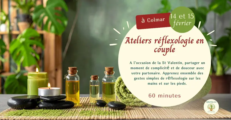 A l’occasion de la Saint-Valentin, le cabinet de réflexologie Reflex'O Bien-etre à Colmar propose un week-end entier dédié aux couples qui souhaitent vivre un moment doux, complice et ressourçant. Deux formules sont disponibles pour s’adapter a vos envies : une séance privée en duo ou un atelier collectif en petit groupe.
