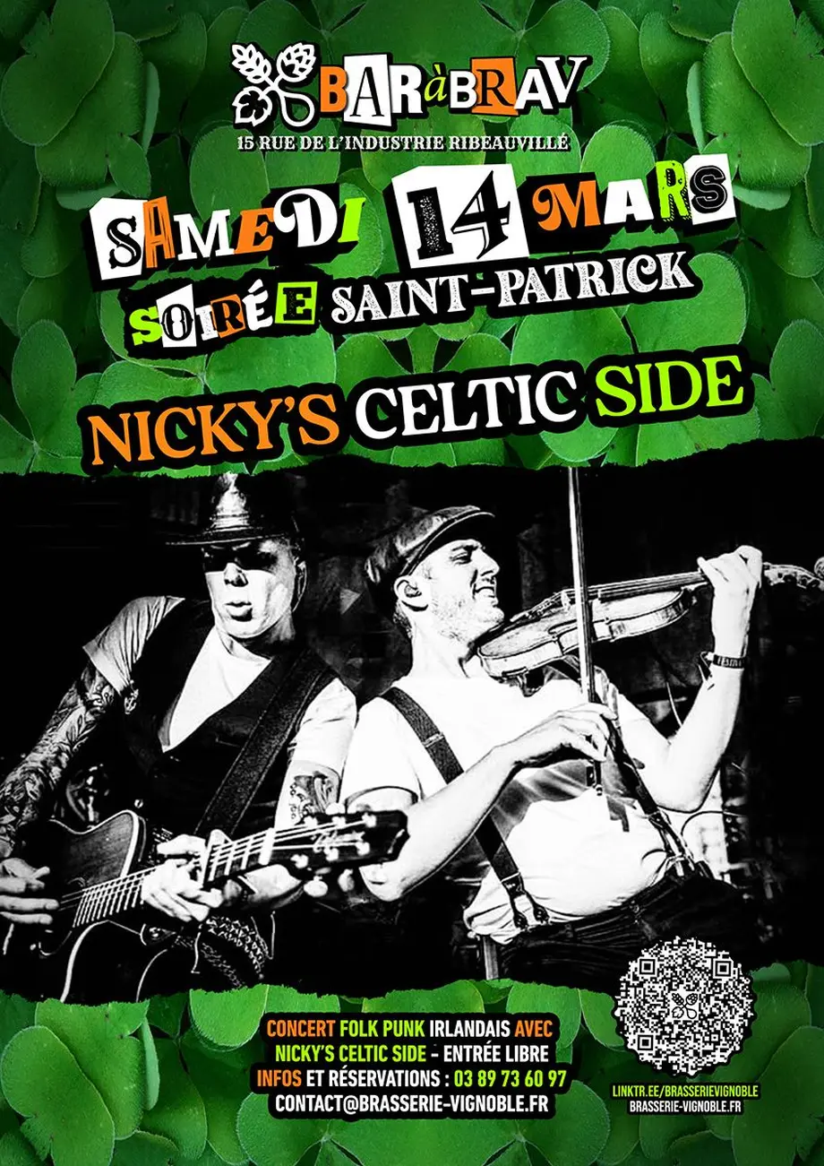 Cette année, on va fêter la Saint-Patrick un peu en avance au BaRàBraV de Ribeauvillé. Avec un programme au couleur de l'Irlande ! Samedi 14 mars, à partir de 20h00, le duo Nicky's Celtic Side se produira au bar de la Brasserie du Vignoble, pour une soirée entre tradition et punk attitude !