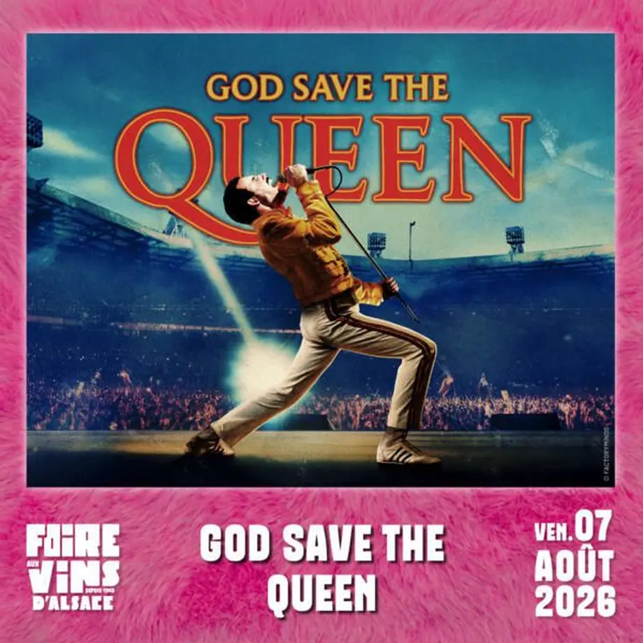 Le vendredi 7 août 2026, la coquille de Colmar s'apprête à vibrer au rythme des plus grands hymnes du rock britannique. Pour cette nouvelle édition de la Foire aux Vins, c'est le groupe argentin God Save The Queen qui montera sur scène pour faire revivre la légende de Freddie Mercury.