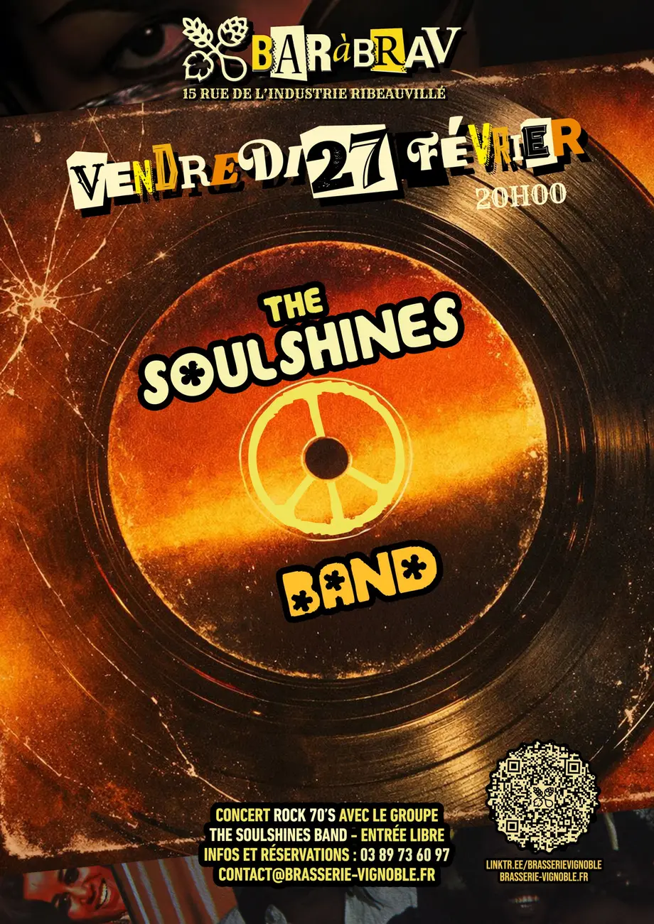 Vendredi 27 février, le groupe alsacien The Soulshines Band se produira au BaRàBraV de Ribeauvillé. Accolé à la brasserie artisanale locale, la Brasserie du Vignoble, le bar accueillera le groupe pour ce concert gratuit, et débutera à 20h00. Réservation recommandée pour manger sur place.