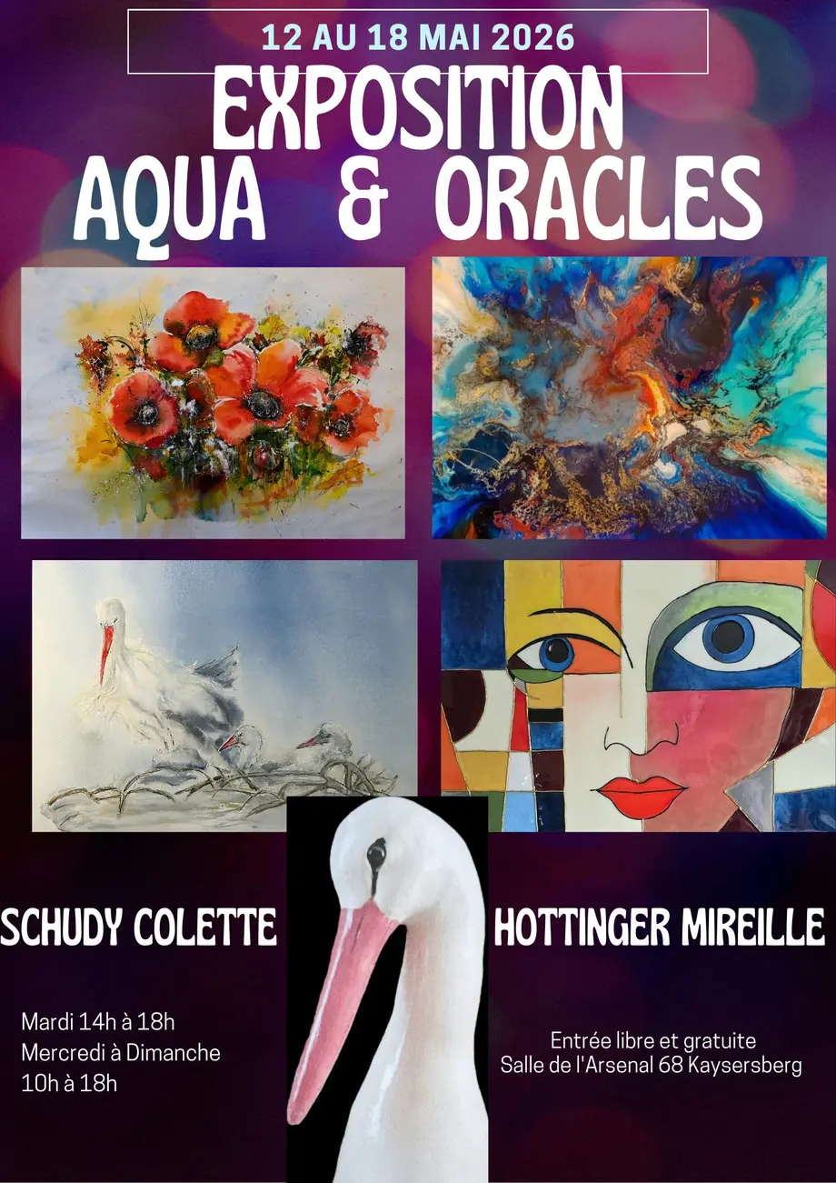 L’exposition “Aqua & Oracles” réunit Colette Schudy et Mireille Hottinger à Kaysersberg, du 12 au 17 mai, dans la salle de l’Arsenal. Le public est invité à découvrir deux univers artistiques qui se répondent et se complètent : l’un explore la fluidité, la transparence et les métamorphoses de l’eau, l’autre interroge la résine, les signes intérieurs et la dimension oraculaire des images. Ensemble, leurs œuvres tissent un dialogue subtil entre matière, lumière et symboles. Cette rencontre artistique propose une immersion sensible, presque méditative, où chaque toile devient passage, résonance et révélation. Une invitation à ralentir, contempler et se laisser traverser.