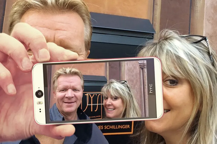 Jean-Yves Schillinger et sa femme Kathia, devant le JY'S : le chef était ravi de répondre à des questions pas banales ! © Mike Obri Jean-Yves Schillinger et sa femme Kathia, devant le JY'S : le chef était ravi de répondre à des questions "pas banales" !