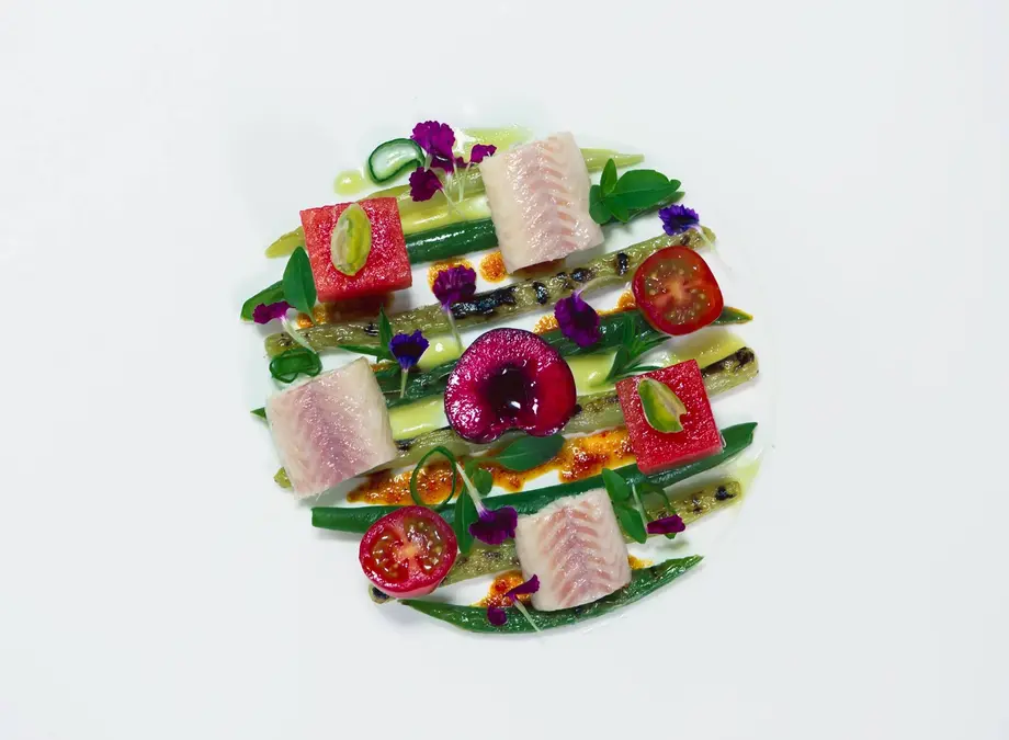 Il nous propose de faire un petit tour dans sa cuisine (qu'il a fait déplacer trois fois déjà !) et nous y dévoile un assortiment impressionnant de fleurs comestibles et d'herbes aromatiques, ses fragrances d'été, qui viennent magnifier ses plats. Sa signature. « Cela m'a pris des années pour savoir quoi cueillir et à quel moment. Je me suis promené longtemps en forêt avec des tas de livres ! »