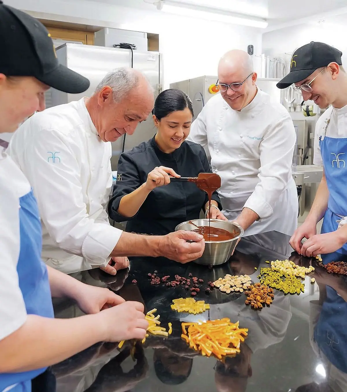 Celui qui chapeaute ce lieu gourmand n'est autre que le chef pâtissier de l'Auberge de l'Ill, Pascal Hainigue, récemment auréolé du titre de "chef pâtissier de l'année" aux très prestigieux trophées Le Chef 2025. L'exceptionnel parcours professionnel de ce grand gaillard de 35 ans laisse pantois. « Mes parents n'étaient pas du métier, on ne connaissait pas l'univers des étoilés. J'ai découvert le plaisir de la cuisine tout gamin, à Buhl, chez notre voisine Frida - une mamie tout ce qu'il y a de plus alsacienne, avec son tablier bleu. Elle me préparait des Kiechle aux cerises noires. La petite "graine" de la pâtisserie a germé... Au collège, j'ai souhaité faire un stage à la pâtisserie du village, mais les places étaient disputées. Frida, qui connaissait le patron, lui avait dit : si tu ne prends pas Pascal, je ne viens plus chez toi ! Donc... j'ai été pris ! » s'amuse Pascal Hainigue.