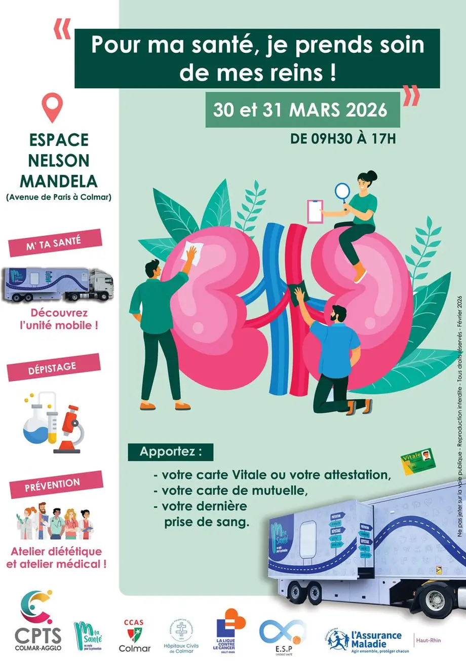 Durant ces deux journées, le public pourra bénéficier d’un temps d’échange et de sensibilisation autour de la prévention, avec une thématique principale consacrée au dépistage et à la prévention de la Maladie Rénale Chronique (MRC). Des dépistages seront proposés sur place afin de permettre à chacun d’évaluer sa santé rénale et d’être orienté si nécessaire.