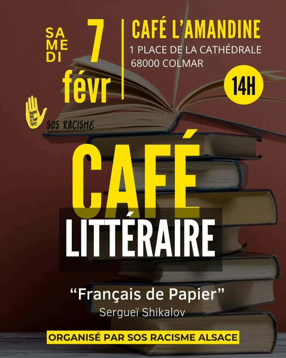 SOS Racisme Alsace organise le 07 février un café littéraire autour de l'œuvre " français de papier " de 14h à 16h.