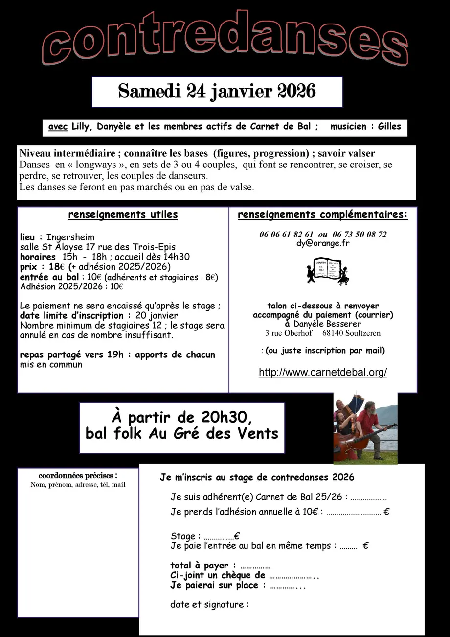 entrée au bal : 10€ (adhérents et stagiaires : 8€)