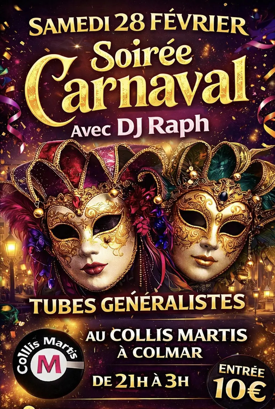 Nous vous convions à la soirée Carnaval du Collis Martis samedi 28 février, de 21h à 3h.