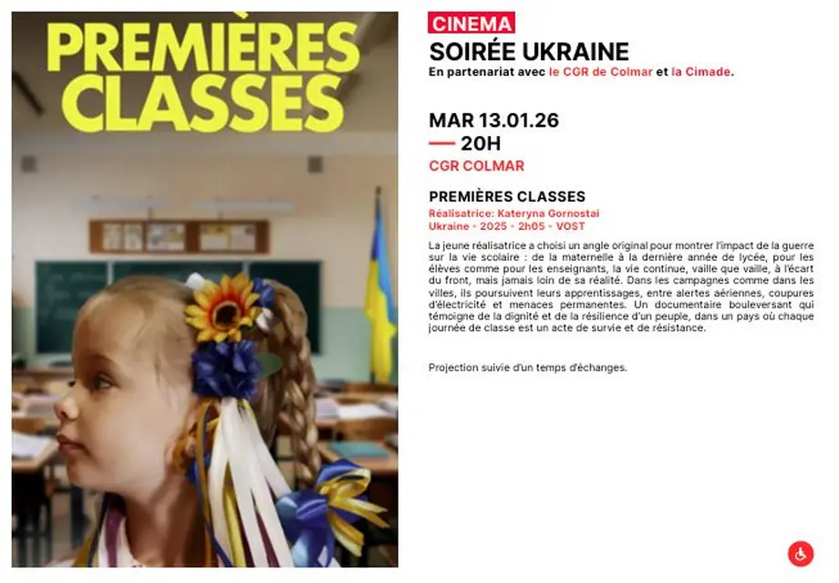 C'est un documentaire bouleversant de la réalisatrice Kateryna GORNOSTAI, tourné en 2025 (2h05 - VOST), qui témoigne de la dignité et de la résilience d'un peuple, dans un pays où chaque journée de classe est un acte de survie et de résistance.