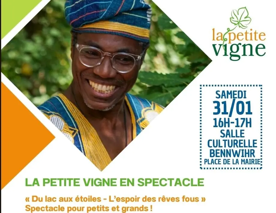 Après l'éblouissant spectacle ''la cabalasse perdue" en 2025, c'est avec un plaisir renouvelé que l'association la petite Vigne de Bennwihr reçoit de nouveau, en ce début d'année 2026, le conteur Innocent Yapi avec son solo de conte : du lac aux étoiles.