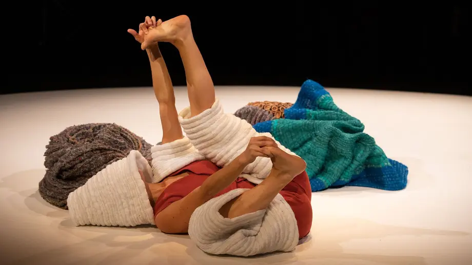 Parce que ça peut être impressionnant d’entrer dans une salle de spectacle pour la toute première fois, quand on est haut·e comme trois pommes, le collectif POM a imaginé un espace d’accueil pour explorer différentes matières textiles et sonores. Une douce transition, au son de la flûte traversière, vers la découverte du plateau, où sont installées de drôles de sculptures tactiles, créées par l’illustratrice et plasticienne Myriam Colin. Nid, cocon en accordéon, coquilles de noix, chrysalide de chenille, autant de créations bigarrées qui deviennent des abris, des cachettes, des terrains de jeux et de fictions pour la comédienne Pauline Leurent et le musicien Olivier Touratier. Par le mouvement, la poésie et la musique, chaque objet prend vie et raconte une histoire, comme une passerelle vers l’imaginaire. À la fin du spectacle, les petit·es spectateur·rices ont la joie de rejoindre les deux artistes sur scène pour s’amuser, toucher, caresser, manipuler, ressentir à leur tour les matières, les textures, et expérimenter la musique des percussions.