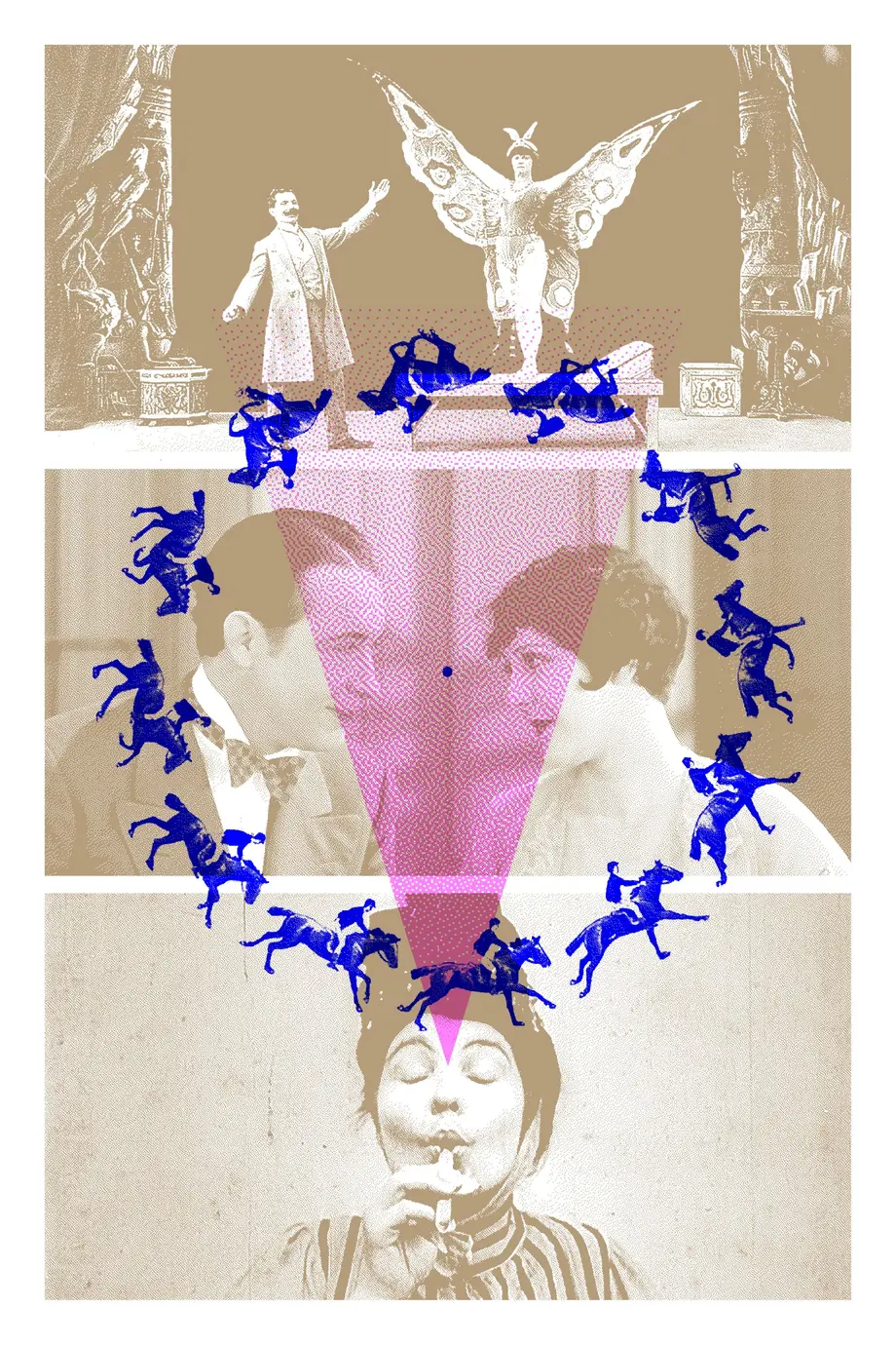 Figure incontournable du cinéma muet, le bonimenteur sera notre guide pour explorer ce livre d’images qui dévoile, page après page, l’histoire extraordinaire de la naissance du 7e art. Autour de lui, acteur·rices et technicien·nes glissent du noir et blanc à la couleur, du muet au parlant, tandis que des personnages s’amusent à recréer devant nous ces premières illusions. En s’inspirant de la joie et de la créativité qui fourmillent dans les archives de cette époque, Émilie Capliez, en complicité avec les six interprètes, restitue ce petit laboratoire où se jouent toute la naïveté et la beauté de ces premières expériences. Avec du papier, des costumes, quelques toiles peintes et des sources lumineuses manipulées par les interprètes, sans oublier l’indispensable piano qui met la musique au premier plan, la metteuse en scène crée une véritable machine à jouer, prête à faire briller des étoiles dans les yeux des petit·es et des grand·es spectateur·rices.