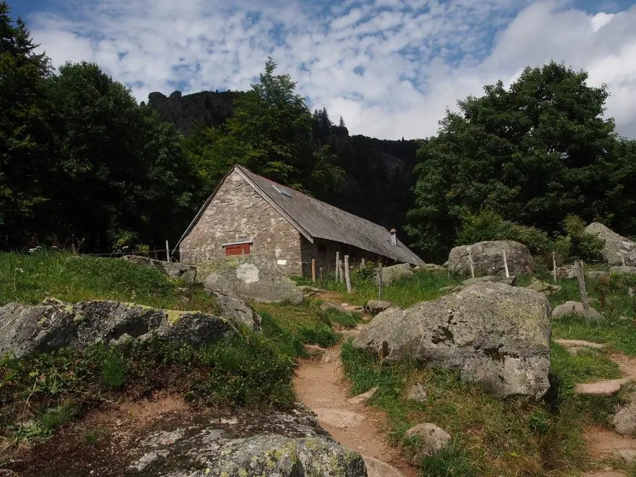 Pour y accéder il faut rejoindre Stosswihr et le vallon d'Ampfersbach, le parking du Stolz Ablass, ensuite 3 km de chemin forestier. Laissez la voiture ici à 810 mètres d'altitude, puis préparez-vous à marcher un peu moins d'une heure pour rejoindre cette fabuleuse auberge de pierre, nichée dans cet ancien cirque glaciaire, protégé par le statut de réserve naturelle.
