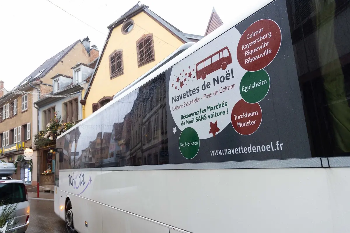 Les Navettes de Noël en Alsace 2025 relient la gare de Colmar aux villages de Kaysersberg, Riquewihr, Ribeauvillé, Eguisheim, Turckheim, Munster et Neuf-Brisach.