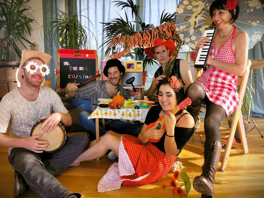 Cinq troubadours vous embarquent avec des compositions tantôt piquantes, tantôt sensibles. C’est la petite cuisine qui la ramène avec sa batterie de saveurs ! Ça goûte le swing, la biguine, le rock, un brin de tango et la transpiration en fin de concert !