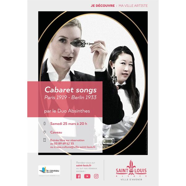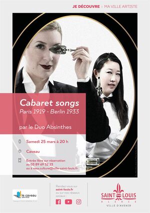 Cocktail de voix et piano, le Duo Absinthes invite à un voyage au début du 20e siècle, entre Paris et Berlin, dans l’atmosphère équivoque des cabarets.