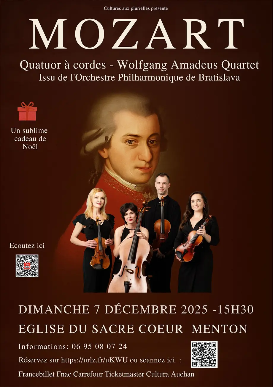 Par amour pour ce compositeur d’exception, le quatuor invite son public à un voyage musical dans des lieux empreints d’histoire, où la musique de Mozart, véritable prière, résonne avec une intensité inégalée.