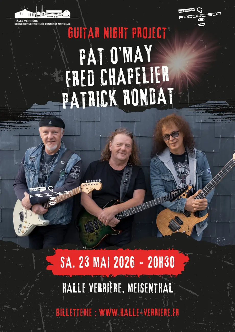 FRED CHAPELLIER, PATRICK RONDAT et PAT O’MAY souhaitent, au travers de ce concert xceptionnel, partager leur amour de la guitare en rendant un hommage vibrant aux guitaristes qui leur ont donné l’envie de consacrer leur vie à la musique par le biais de cet instrument.